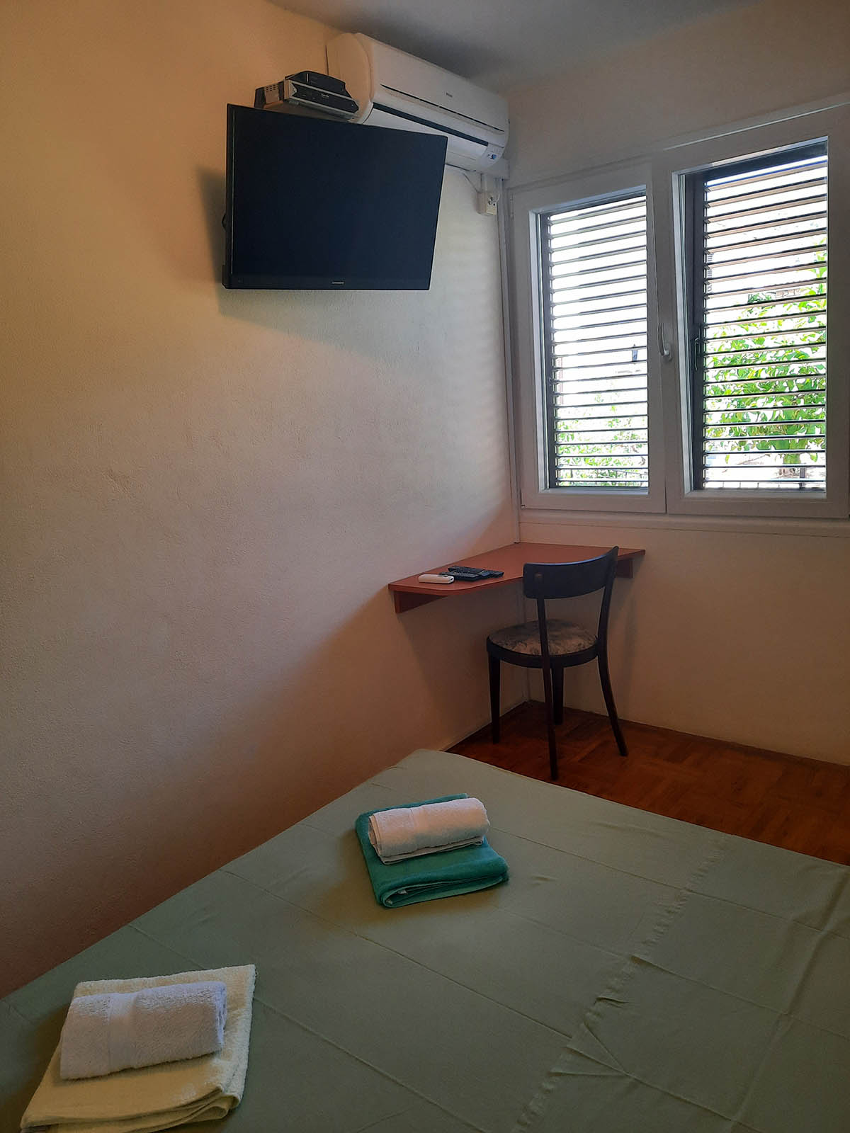 Un appartamento si trova al piano terra. È adatto per un massimo di due persone. L'appartamento è completamente attrezzato, composto da cucina, camera da letto, bagno e terrazza. È climatizzato e coperto dal nostro segnale WiFi. La camera da letto ha una TV a schermo piatto con canali satellitari. Gli utenti degli appartamenti hanno accesso all'uso gratuito della piscina.